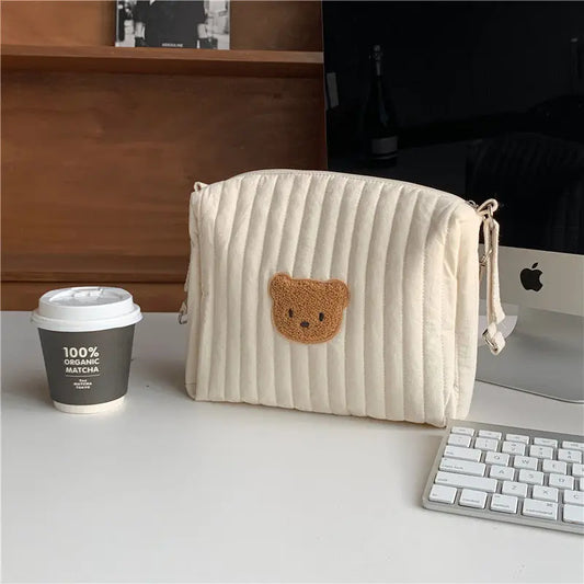 Sac de maquillage en coton à carreaux – Style coréen pratique