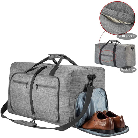 Sac de voyage pliable 65L en polyester avec compartiment chaussures
